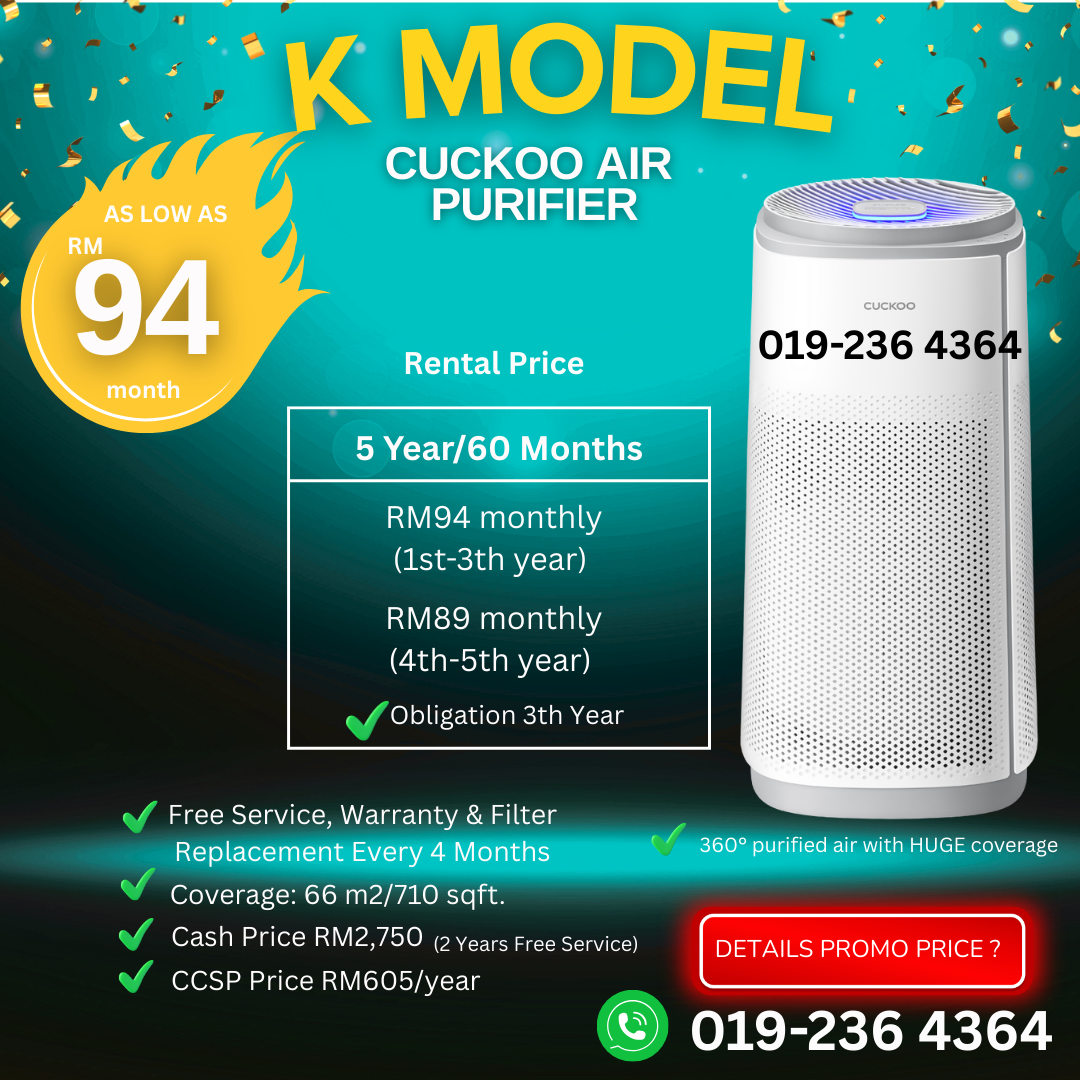 Penapis Udara Keluaran Baru CUCKOO 2023! Design Simple & Mudah Dipindahkan Kemana Saja! Mampu Menyerap Bahan Toksik, Kuman, Virus, Bulu Haiwan, & Habuk Halus! Serendah RM70 Sebulan Mampu Milik Untuk Anda! Tekan Button Whatsapp Untuk Info Lanjut!