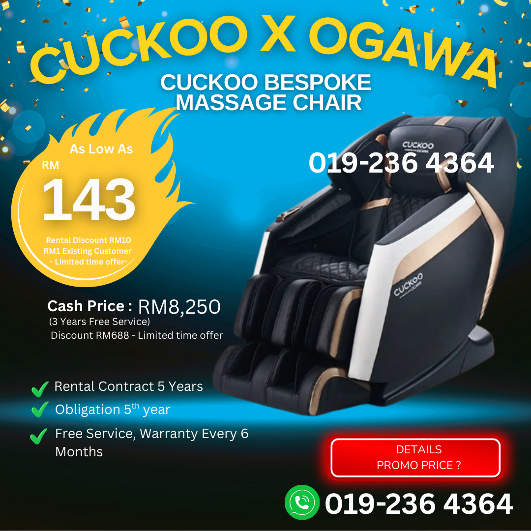 Cuckoo Kerjasama Dengan Ogawa Menghasilkan Kerusi Urut Premium Dengan Harga Lebih Mampu Milik Untuk Anda Seisi Keluarga Relax Dengan Urutan Sempurna Hanya Dirumah