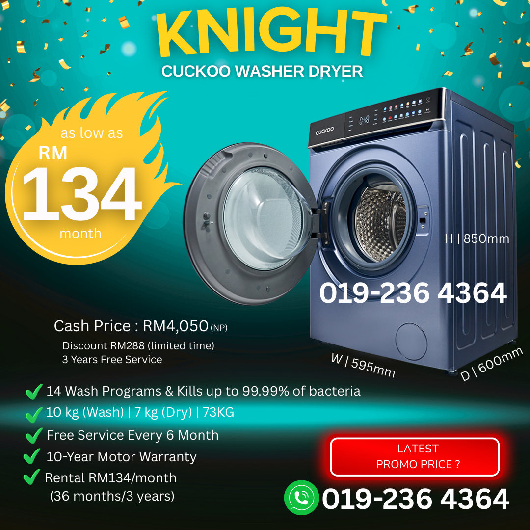 2-in-1 Space Saver Just one CUCKOO KNIGHT to do it all Up To 7kg Dry